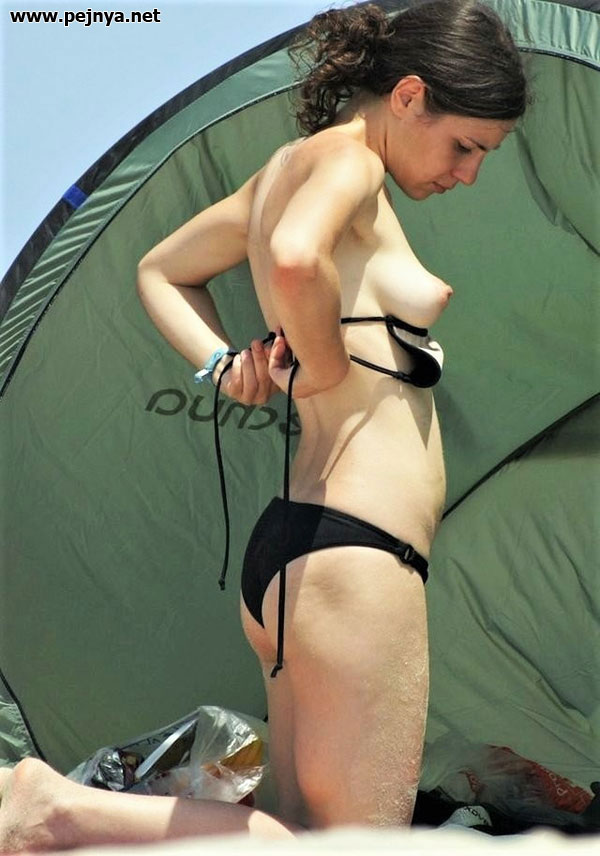 Девушки переодеваются на пляжу (5)