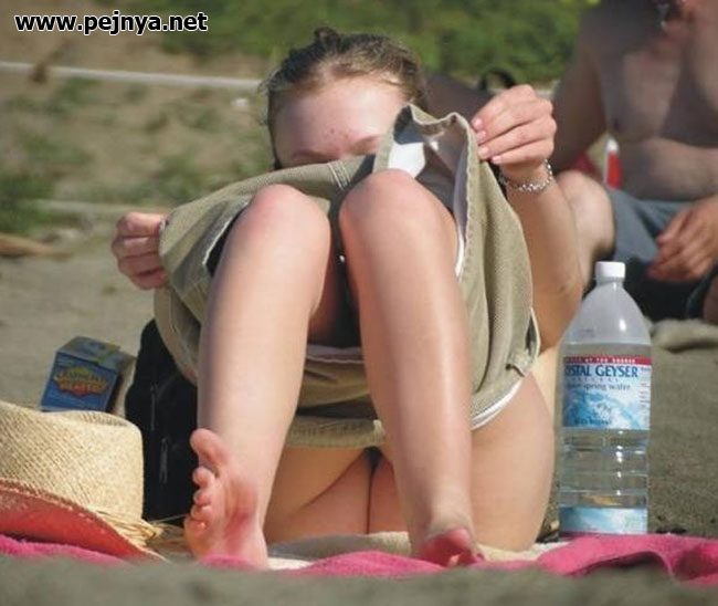 Девушки переодеваются на пляжу (4)