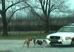 Собаки против полицейской машины.