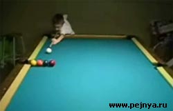 А теперь ребёнок показывает бильярдные трюки. Учитесь...
