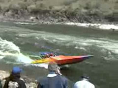 Катер против течения бурной реки.