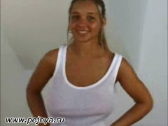 Девка перед камерой трясёт своими дойками и филейной частью.