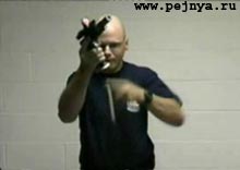 Мужик просто вертуозно меняет обоймы в пистолете.