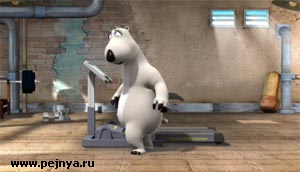 Прикольный мультик. Белый медведь на беговой дорожке.