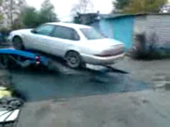 Неудачно машину с эвакуатора спустили