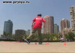 Девушка показывает класс на ролликах.