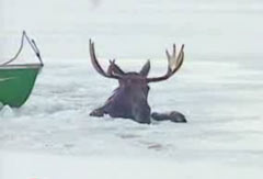 Спасение лося из под льда.
