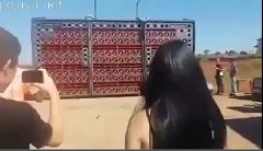 Безбашенные японцы. Парень подбежал к тёлке и обкончал её.