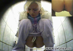 Камера установленная в женском туалете заполила блондиночку справляющую нужду.
