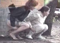 Двух девок засняли на камеру когда они присели поссать за домом
