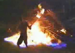 Взрыв петарды в руках.